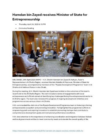 recent visit to the Al Dhafra Region. The visit included a series of engagements with local