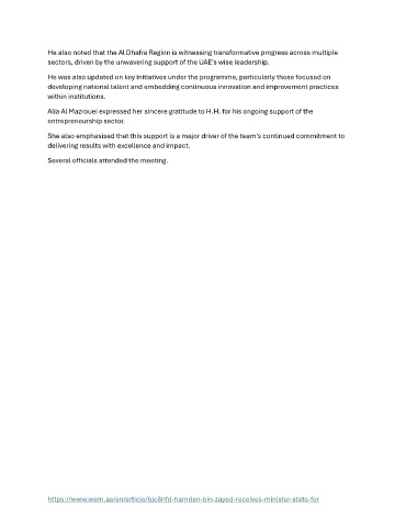 He also noted that the Al Dhafra Region is witnessing transformative progress across multiple