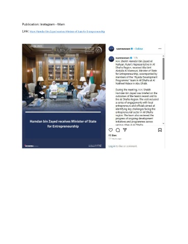 Publication: Instagram - Wam Link: Wam: Hamdan bin Zayed receives Minister of State for Entrepreneurship