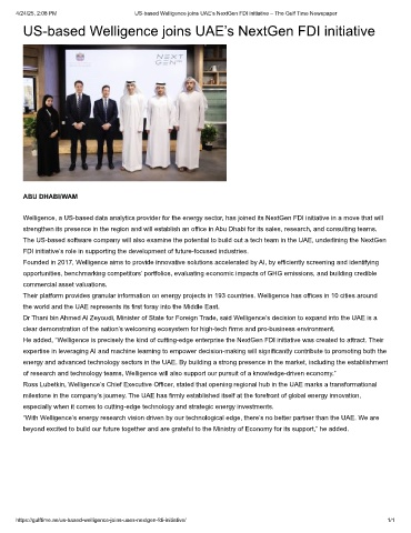 https://gulftime.ae/us-based-welligence-joins-uaes-nextgen-fdi-initiative/ 1/1