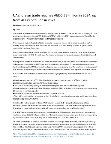 in services trade in 2024, the UAE’s performance underscores its resilience amid rising tariffs and