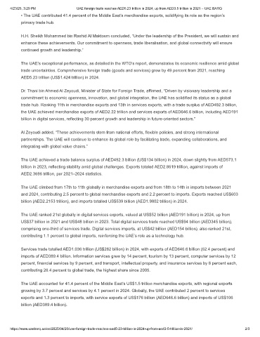 exports and 1.3 percent to imports, with service exports of US$176 billion (AED646.6 billion) and imports of US$106