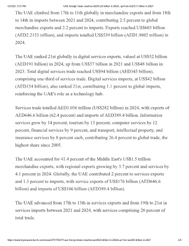 https://www.bignewsnetwork.com/news/278175417/uae-foreign-trade-reaches-aed523-trillion-in-2024-up-from-aed35-trillion-in-2021 4/5