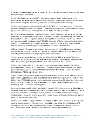 services exports, with a trade surplus of AED492.3 billion, the UAE achieved merchandise exports