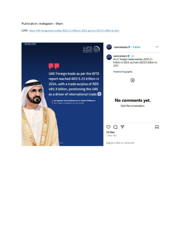 Publication: Instagram - Wam Link: Wam: UAE foreign trade reaches AED5.23 trillion in 2024, up from AED3.5 trillion in 2021