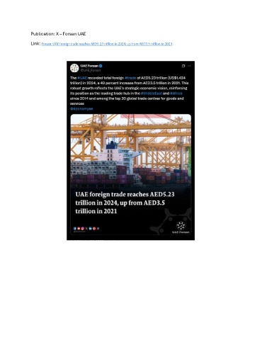 Publication: X – Forsan UAE Link: Forsan: UAE foreign trade reaches AED5.23 trillion in 2024, up from AED3.5 trillion in 2021