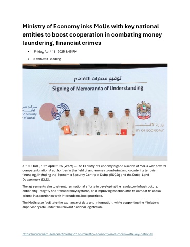 ABU DHABI, 18th April 2025 (WAM) -- The Ministry of Economy signed a series of MoUs with several