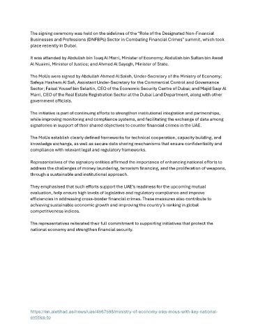 signatories in support of their shared objectives to counter financial crimes in the UAE.