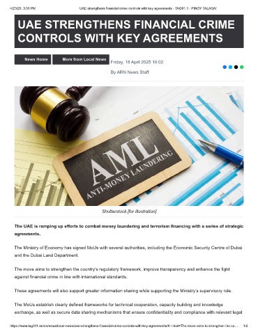 4/23/25, 3:56 PM UAE strengthens financial crime controls with key agreements - TAG91.1 - PINOY TALAGA!