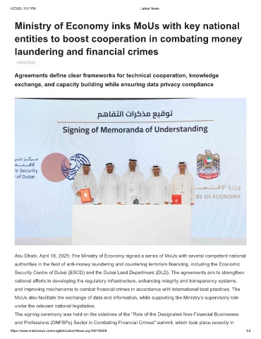 Abu Dhabi, April 18, 2025: The Ministry of Economy signed a series of MoUs with several competent national