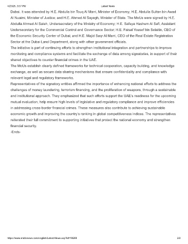 Al Nuaimi, Minister of Justice; and H.E. Ahmed Al Sayegh, Minister of State. The MoUs were signed by H.E.