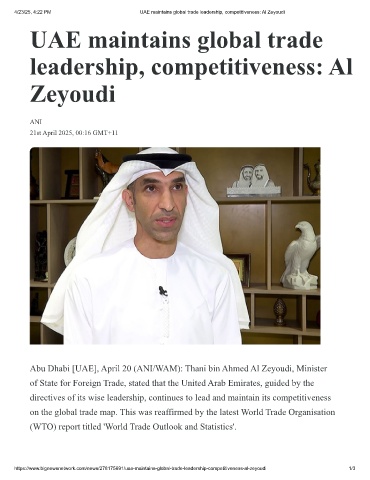 4/23/25, 4:22 PM UAE maintains global trade leadership, competitiveness: Al Zeyoudi