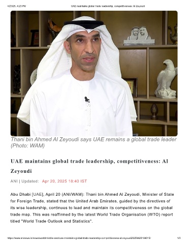 https://www.aninews.in/news/world/middle-east/uae-maintains-global-trade-leadership-competitiveness-al-zeyoudi20250420184015/ 1/3