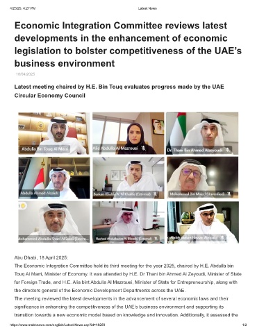 Latest meeting chaired by H.E. Bin Touq evaluates progress made by the UAE