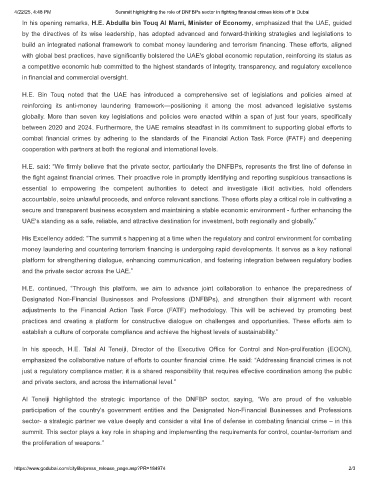4/22/25, 4:48 PM Summit highlighting the role of DNFBPs sector in fighting financial crimes kicks off in Dubai