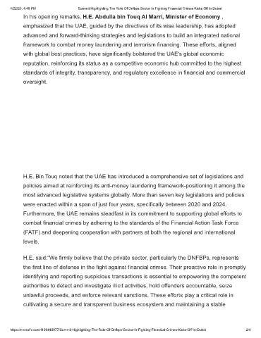 4/22/25, 4:48 PM Summit Highlighting The Role Of Dnfbps Sector In Fighting Financial Crimes Kicks Off In Dubai