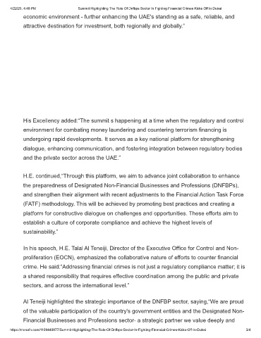 4/22/25, 4:48 PM Summit Highlighting The Role Of Dnfbps Sector In Fighting Financial Crimes Kicks Off In Dubai