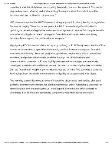 4/22/25, 4:48 PM Summit Highlighting The Role Of Dnfbps Sector In Fighting Financial Crimes Kicks Off In Dubai