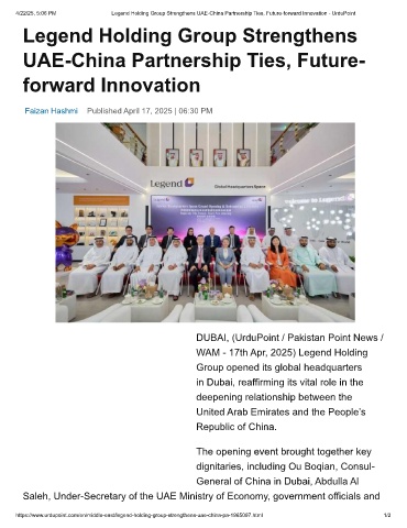 4/22/25, 5:06 PM Legend Holding Group Strengthens UAE-China Partnership Ties, Future-forward Innovation - UrduPoint