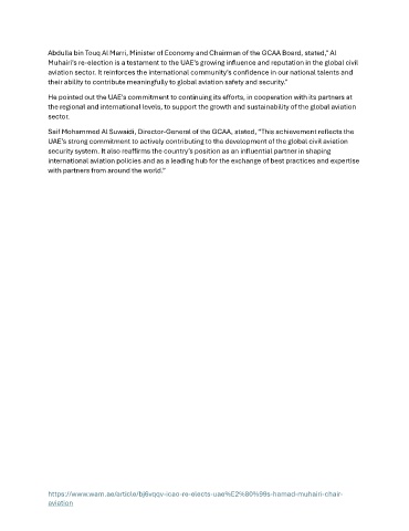 Abdulla bin Touq Al Marri, Minister of Economy and Chairman of the GCAA Board, stated," Al