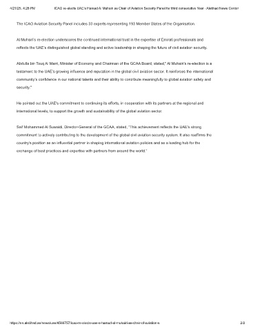 4/21/25, 4:28 PM ICAO re-elects UAE’s Hamad Al Muhairi as Chair of Aviation Security Panel for third consecutive Year - Aletihad News Center