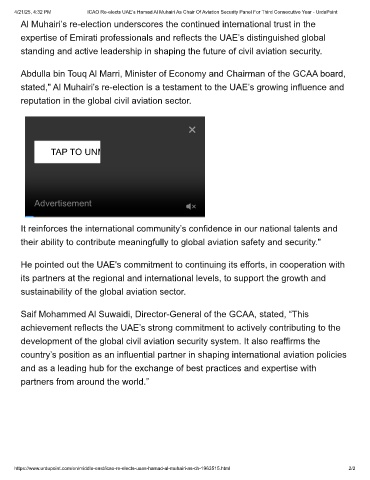 4/21/25, 4:32 PM ICAO Re-elects UAE’s Hamad Al Muhairi As Chair Of Aviation Security Panel For Third Consecutive Year - UrduPoint