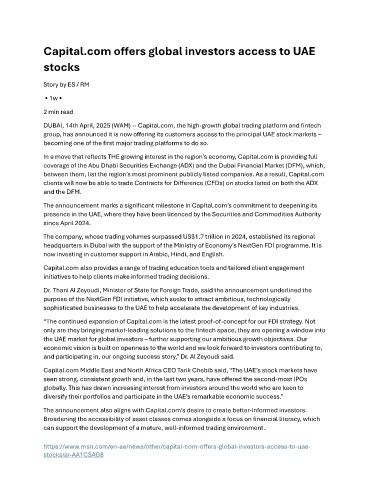 DUBAI, 14th April, 2025 (WAM) -- Capital.com, the high-growth global trading platform and fintech