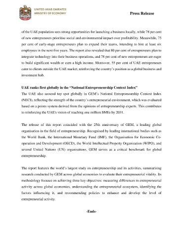 The UAE also secured top spot globally in GEM’s National Entrepreneurship Context Index