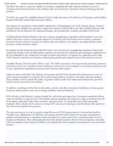 https://totaluae.com/posts/emirates/ministry-of-economy-signs-mou-with-sgs-gulf-limited-to-enhance-quality-control-over-food-consumer-products/ 2/4