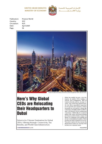 Publication: Finance World Country: GCC Circulation: N/A Date: April 2025 Page: 54