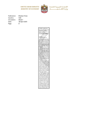 Publication: Khaleej Times Country: UAE Circulation: 89,827 Date: 28 April 2025 Page: 8