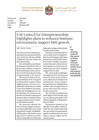 Publication: Al Etihad Country: UAE Circulation: 109,640 Date: 28 April 2025 Page: 9