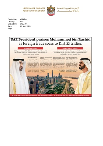 Publication: Al Etihad Country: UAE Circulation: 109,640 Date: 21 April 2025 Page: 1