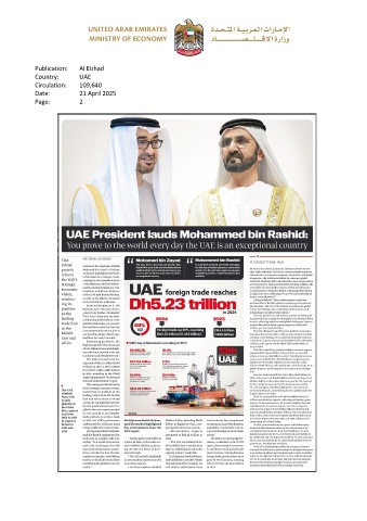 Publication: Al Etihad Country: UAE Circulation: 109,640 Date: 21 April 2025 Page: 2