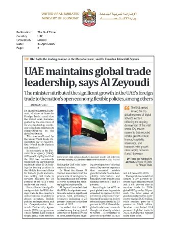 Publication: The Gulf Time Country: UAE Circulation: 60,000 Date: 21 April 2025 Page: 2