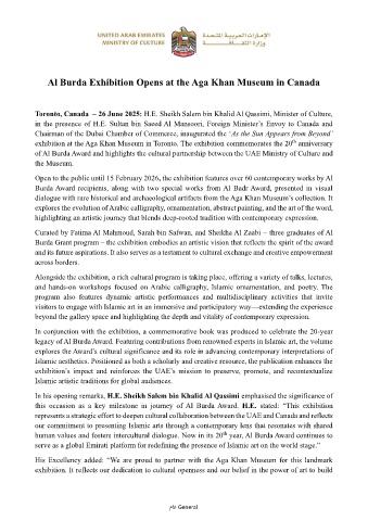 exhibition’s impact and reinforces the UAE’s mission to preserve, promote, and recontextualize