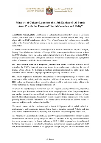 Abu Dhabi, June 25, 2025: The Ministry of Culture has launched the 19 edition of ‘Al Burda