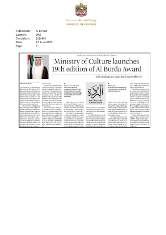 Publication: Al Etihad Country: UAE Circulation: 109,640 Date: 26 June 2025 Page: 9