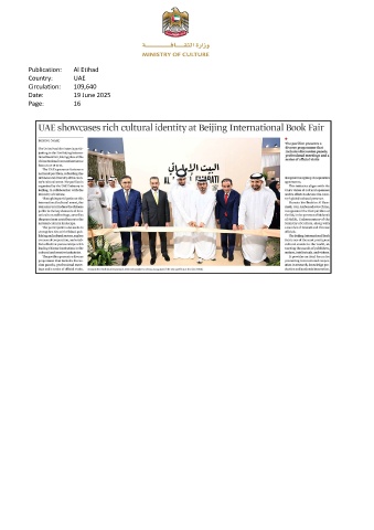 Publication: Al Etihad Country: UAE Circulation: 109,640 Date: 19 June 2025 Page: 16