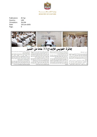 Publication: Al Fajr Country: UAE Circulation: 34,596 Date: 18 June 2025 Page: 9