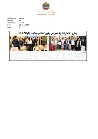 Publication: Al Fajr Country: UAE Circulation: 34,596 Date: 21 June 2025 Page: 8
