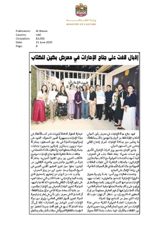 Publication: Al Watan Country: UAE Circulation: 83,000 Date: 21 June 2025 Page: 8