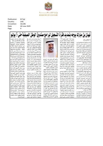 Publication: Al Fajr Country: UAE Circulation: 34,596 Date: 26 June 2025 Page: 4