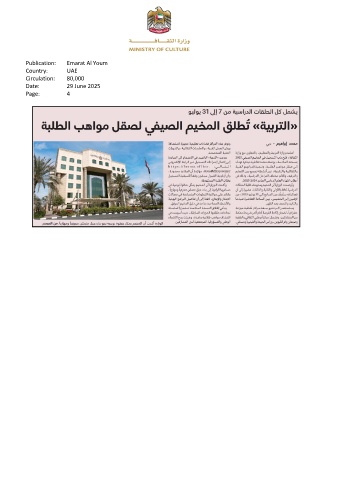 Publication: Emarat Al Youm Country: UAE Circulation: 80,000 Date: 29 June 2025 Page: 4
