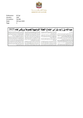 Publication: Al Fajr Country: UAE Circulation: 34,596 Date: 30 June 2025 Page: 3