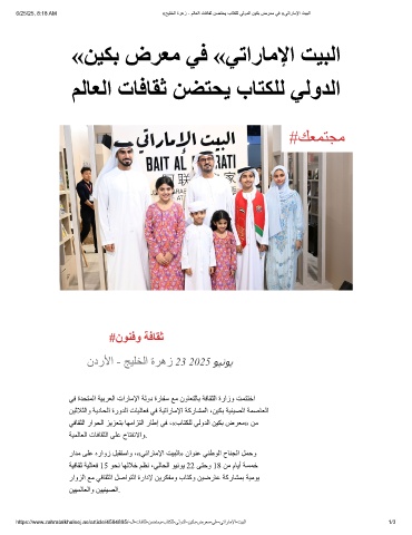 6/25/25, 8:18 AM «ﺞﯾﻠﺧﻟا ةرھز - مﻟﺎﻌﻟا تﺎﻓﺎﻘﺛ نﺿﺗﺣﯾ بﺎﺗﻛﻠﻟ ﻲﻟودﻟا نﯾﻛﺑ ضرﻌﻣ ﻲﻓ «ﻲﺗارﺎﻣﻹا تﯾﺑﻟا