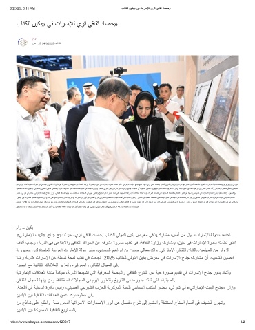 ﺔﯾﺋﺎﻧﺛﻟا تﺎﻗﻼﻌﻟا زﯾزﻌﺗو ،ﻲﻓرﻌﻣﻟاو ﻲﻓﺎﻘﺛﻟا لﺎﺟﻣﻟا ﻲﻓ ةدﺋار ﺔﻟودﻛ تارﺎﻣﻹا نﻋ ﺔﻠﻣﺎﺷ ﺔﺣﻣﻟ مﯾدﻘﺗ ﻲﻓ تﺣﺟﻧ ،2025 بﺎﺗﻛﻠﻟ ﻲﻟودﻟا نﯾﻛﺑ ضرﻌﻣ ﻲﻓ تارﺎﻣﻹا حﺎﻧﺟ ﺔﻛرﺎﺷﻣ نأ ،ﺔﯾﺑﻌﺷﻟا نﯾﺻﻟا ﺔﯾروﮭﻣﺟ ىدﻟ ةدﺣﺗﻣﻟا ﺔﯾﺑرﻌﻟا تارﺎﻣﻹا ﺔﻟود رﯾﻔﺳ ،يدﺎﻣﺣﻟا مﯾھارﺑإ نﺑ نﯾﺳﺣ ﻲﻟﺎﻌﻣ دﻛأو .ﻲﺗارﺎﻣﻹا ﻲﻓﺎﻘﺛﻟا نﺄﺷﻟﺎﺑ نﯾﻣﺗﮭﻣﻟا