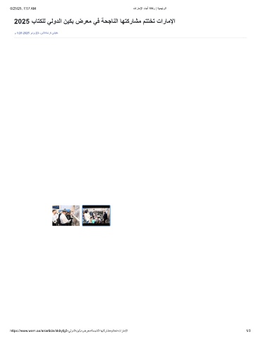 6/25/25, 7:57 AM تارﺎﻣﻹا ءﺎﺑﻧأ ﺔﻟﺎﻛو | ﺔﯾﺳﯾﺋرﻟا 2025 بﺎﺗﻛﻠﻟ ﻲﻟودﻟا نﯾﻛﺑ ضرﻌﻣ ﻲﻓ ﺔﺣﺟﺎﻧﻟا ﺎﮭﺗﻛرﺎﺷﻣ مﺗﺗﺧﺗ تارﺎﻣﻹا م 1:28 2025 وﯾﻧوﯾ 23 ،نﯾﻧﺛﻻاةءارﻗ نﯾﺗﻘﯾﻗد https://www.wam.ae/ar/article/bkbyfg3-ﻲﻟودﻟا-نﯾﻛﺑ-ضرﻌﻣ-ﺔﺣﺟﺎﻧﻟا-ﺎﮭﺗﻛرﺎﺷﻣ-مﺗﺗﺧﺗ-تارﺎﻣﻹا 1/3