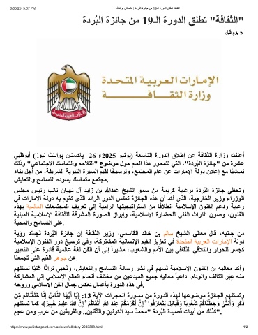 ﻲﺒظﻮﺑأ (زﻮﯿﻧ ﭧﻨﺋاﻮﭘ نﺎﺘﺴﮐﺎﭘ 26 ء2025 ﻮﯿﻧﻮﯾ) ﺔﻌﺳﺎﺘﻟا ةروﺪﻟا قﻼطإ ﻦﻋ ﺔﻓﺎﻘﺜﻟا ةرازو ﺖﻨﻠﻋأ