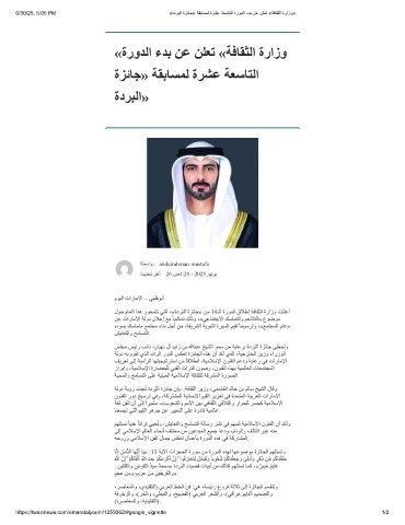 6/30/25, 5:05 PM «ةدرﺑﻟا ةزﺋﺎﺟ» ﺔﻘﺑﺎﺳﻣﻟ ةرﺷﻋ ﺔﻌﺳﺎﺗﻟا ةرودﻟا ءدﺑ نﻋ نﻠﻌﺗ «ﺔﻓﺎﻘﺛﻟا ةرازو»